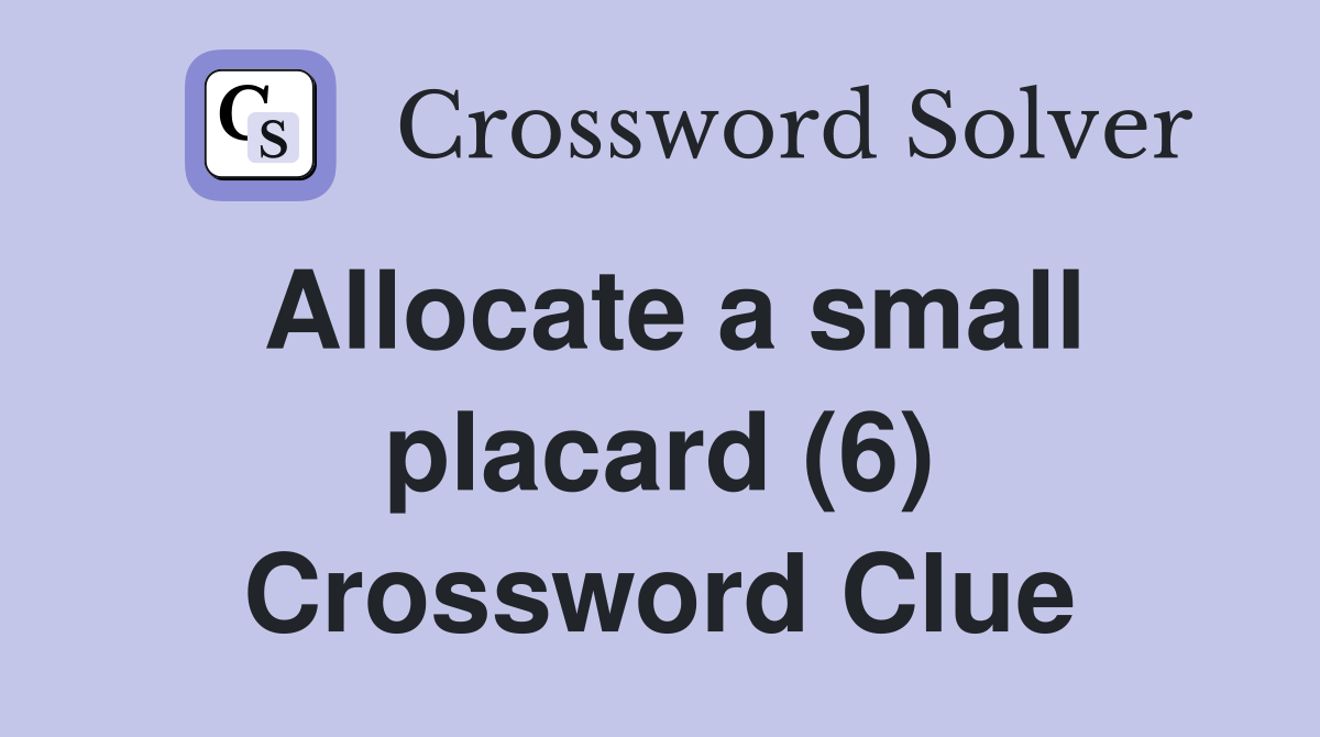 Allocate a small placard (6) Crossword Clue Answers Crossword Solver