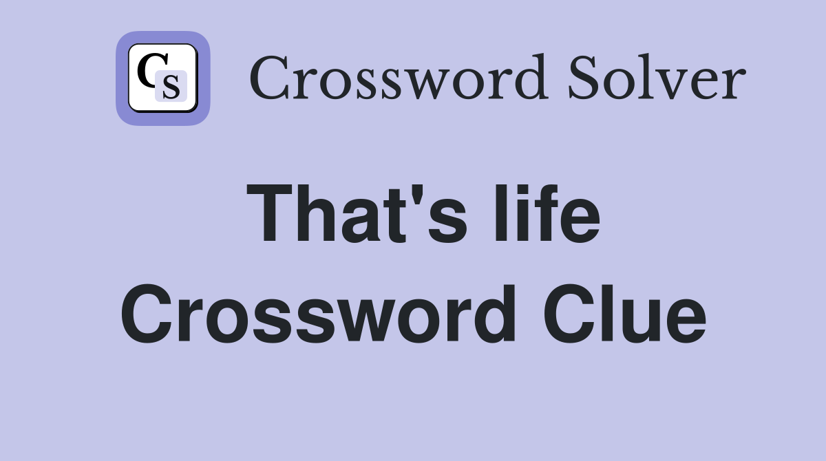 Here are some of the images for Thats Life Crossword Clue that we found in our website database.