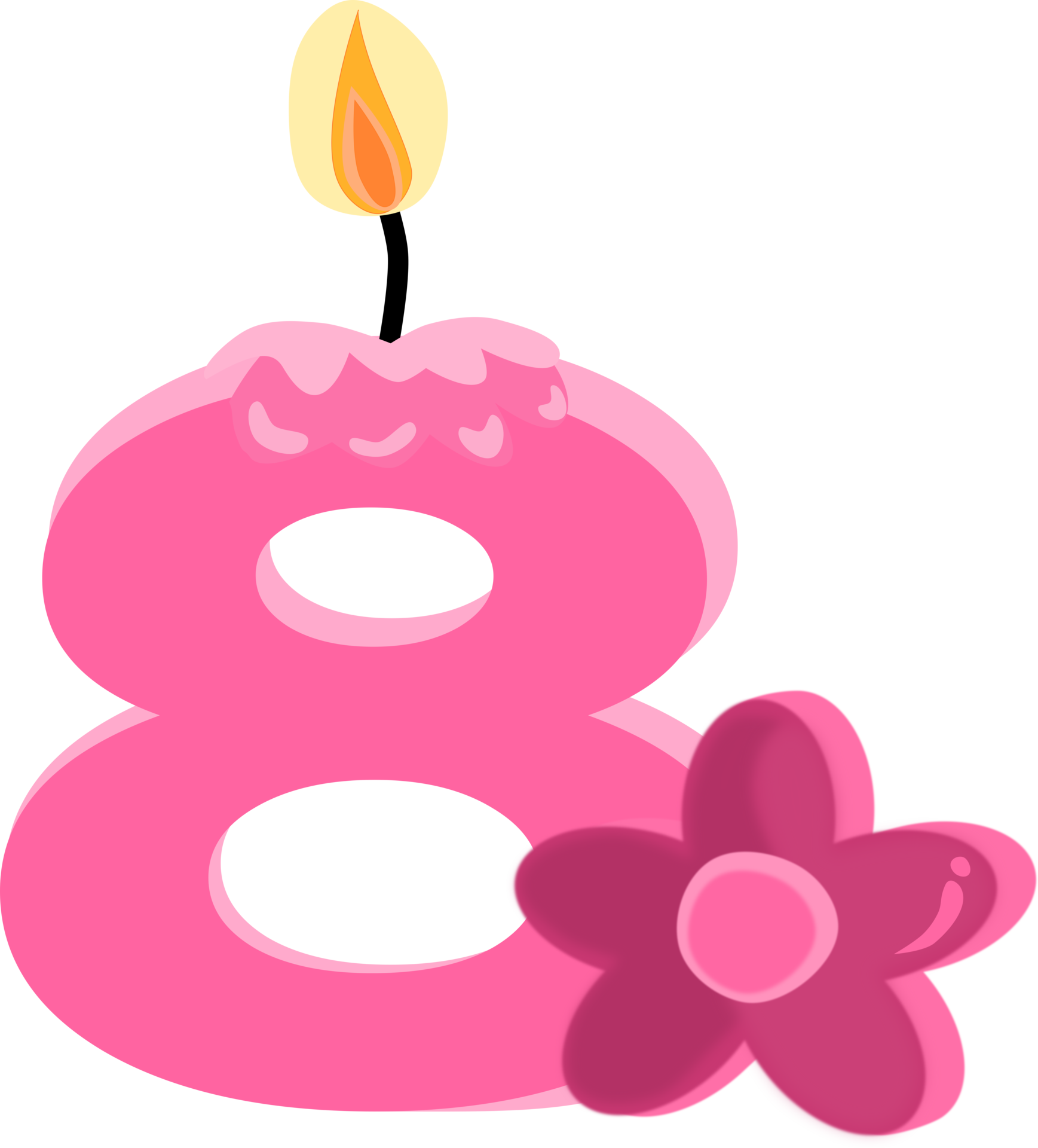 Pink eight 8 number happy birthday candle and flower PNG illustration