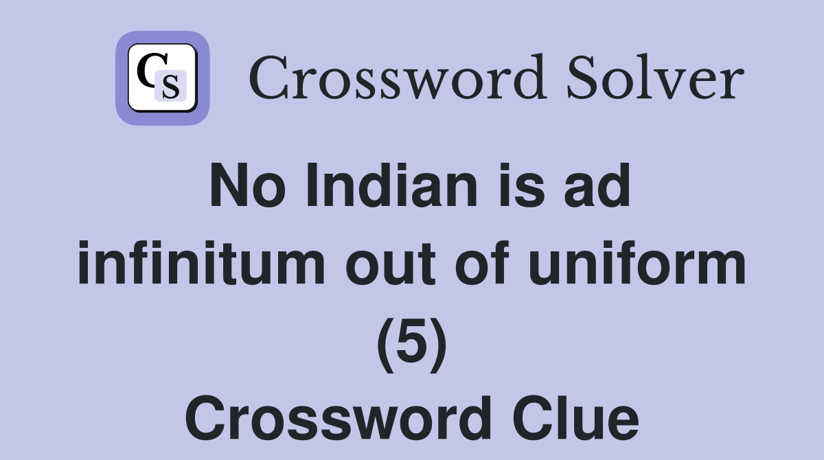 No Indian is ad infinitum out of uniform (5) Crossword Clue Answers