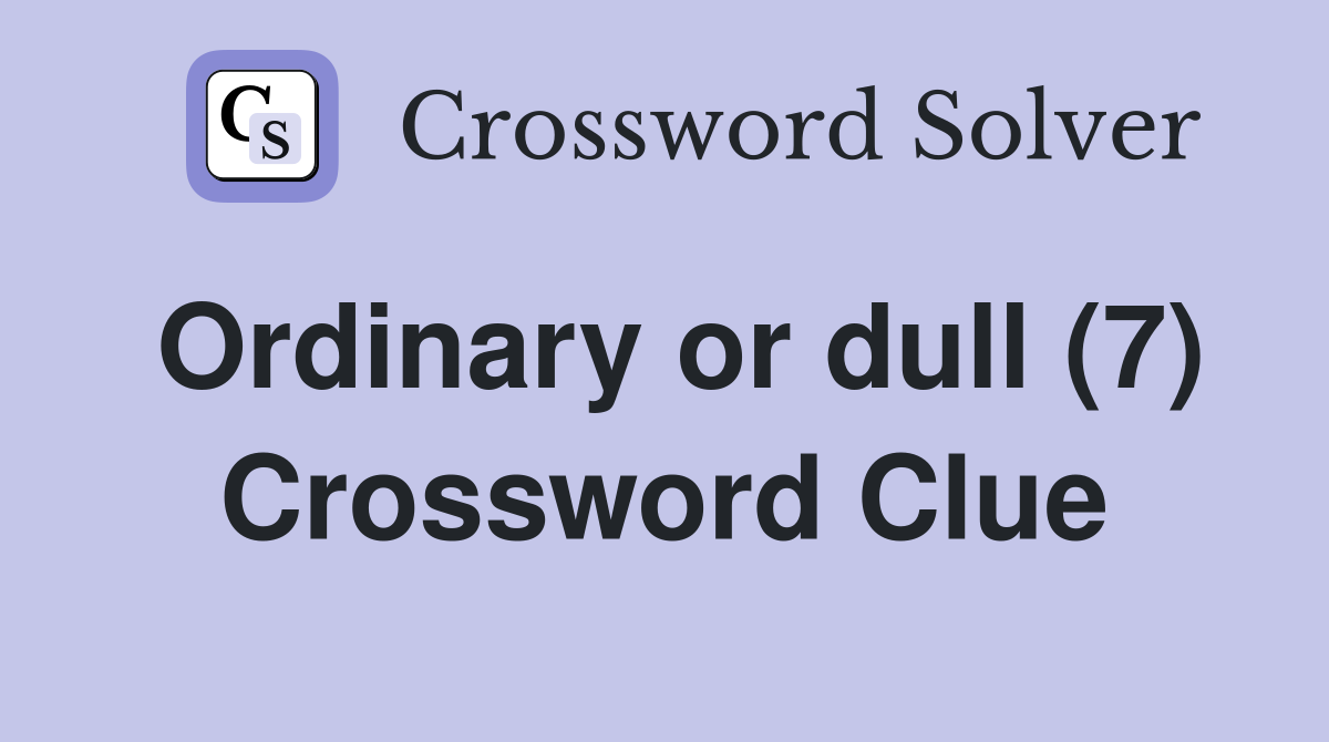 Ordinary or dull (7) Crossword Clue Answers Crossword Solver