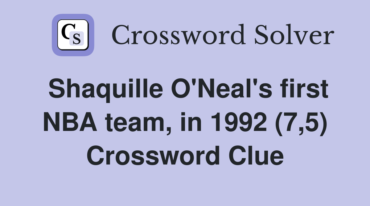 Shaquille O #39 Neal #39 s first NBA team in 1992 (7 5) Crossword Clue
