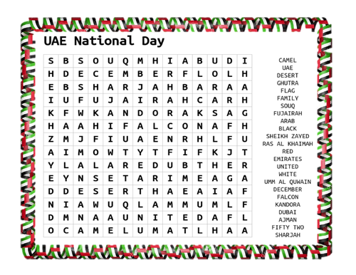 United Arab Emirates (UAE) National Day Word Search Puzzles by