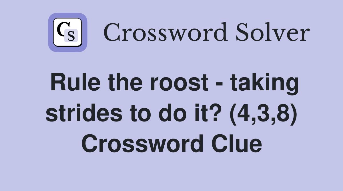 Rule the roost taking strides to do it? (4 3 8) Crossword Clue