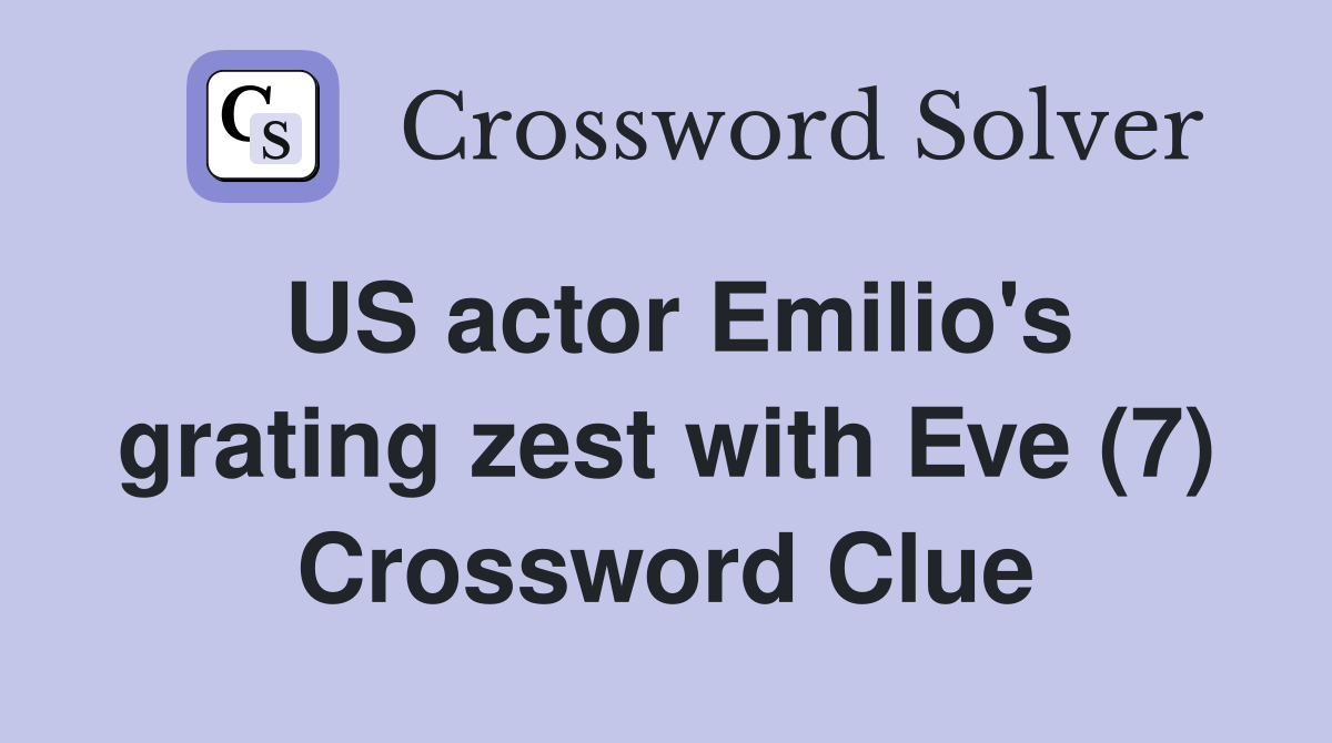 US actor Emilio #39 s grating zest with Eve (7) Crossword Clue Answers