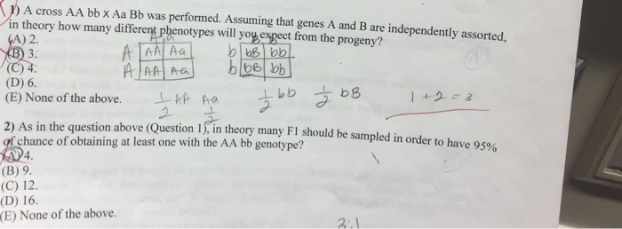 Solved A cross AA bb X Aa Bb was performed Assuming that Chegg com