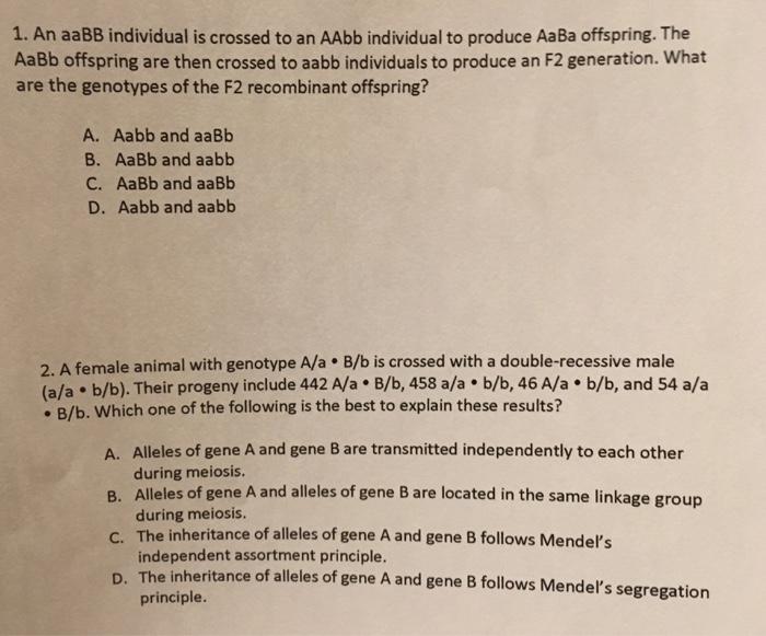 Solved 1 An aaBB individual is crossed to an AAbb Chegg com