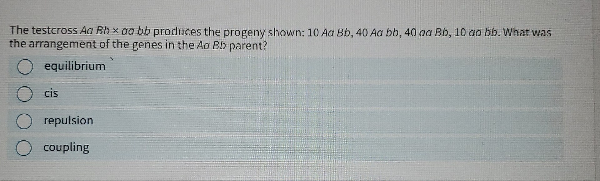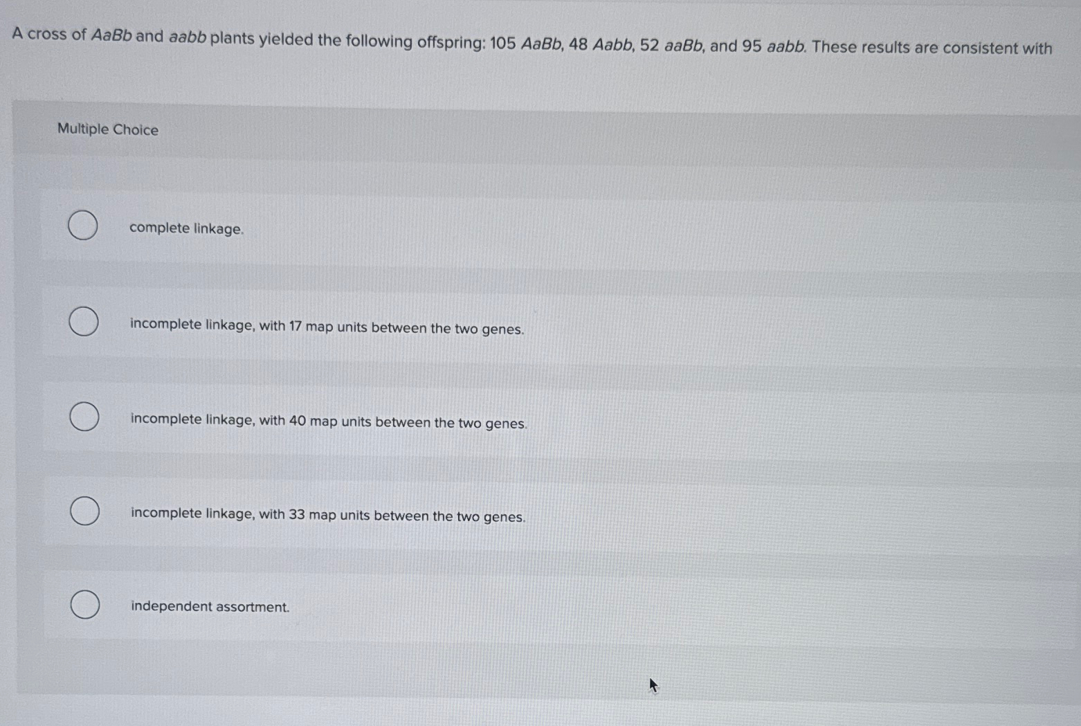 Solved The testcross AaBb×aabb produces the progeny shown: Chegg com