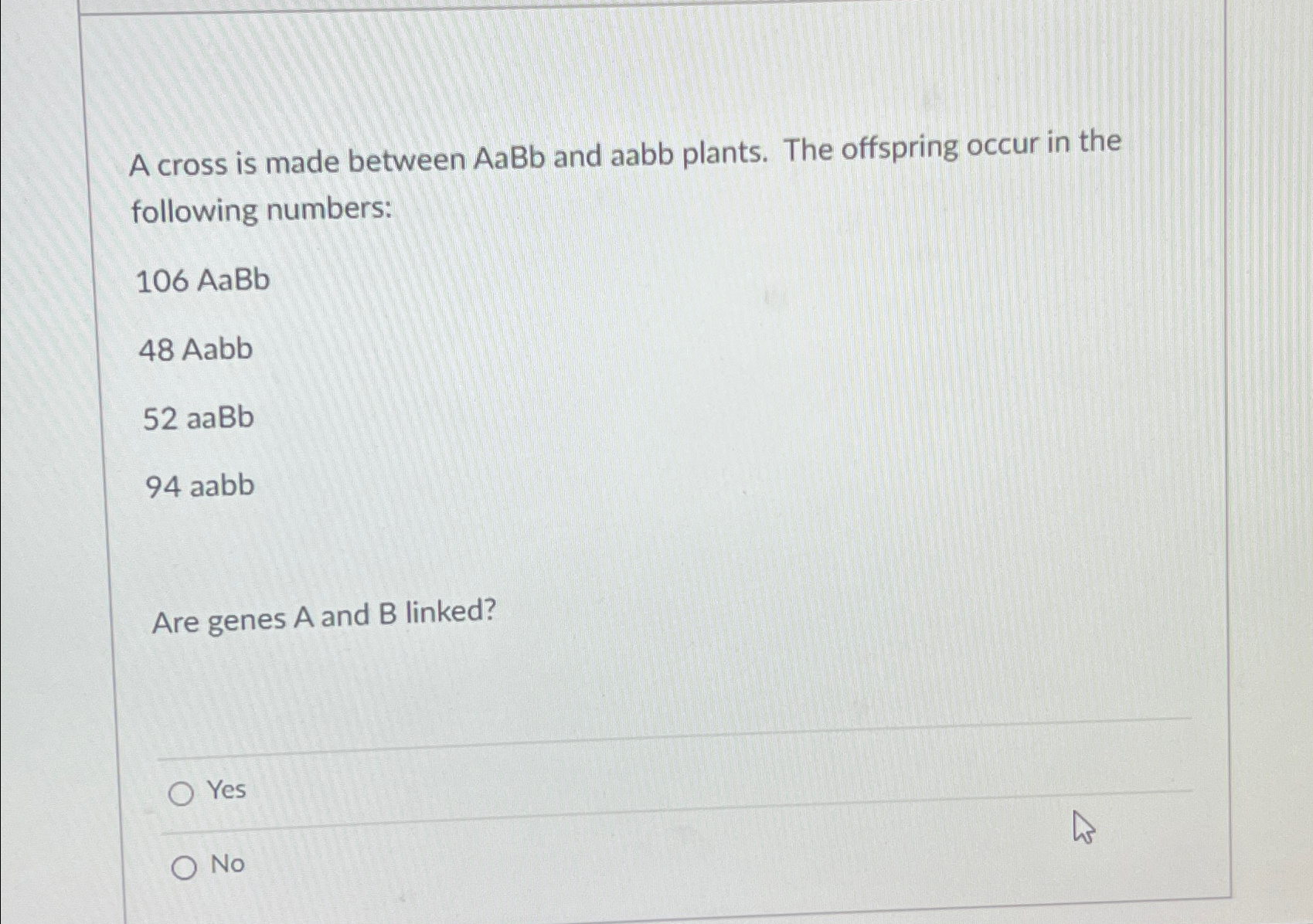Solved A cross is made between AaBb and aabb plants and the Chegg com