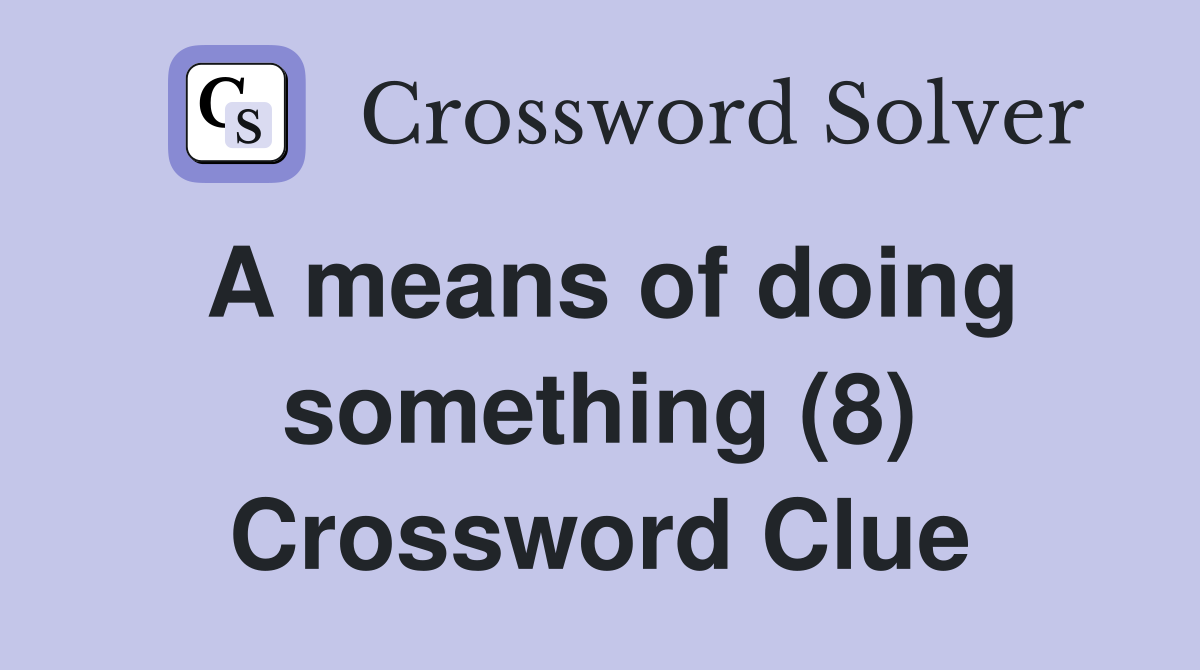 A means of doing something (8) Crossword Clue Answers Crossword Solver