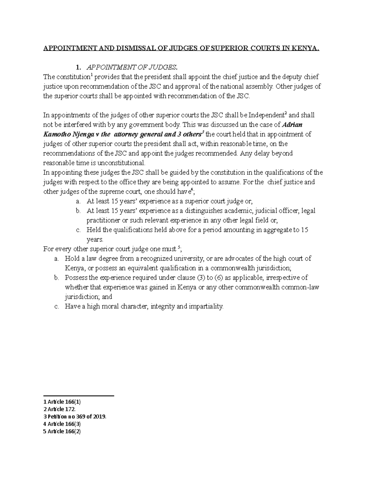 Appointment AND Dismissal OF Judges OF Superior Courts IN Kenya