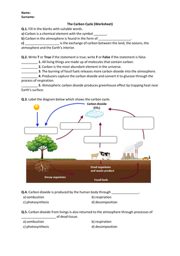 The Carbon Cycle Worksheet with Exam Style Questions by learnwithlaura