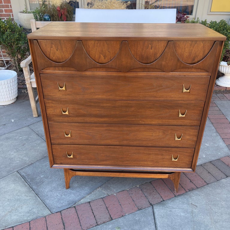 Midcentury Modern Broyhill Brasilia Five Drawer Tallboy Dresser