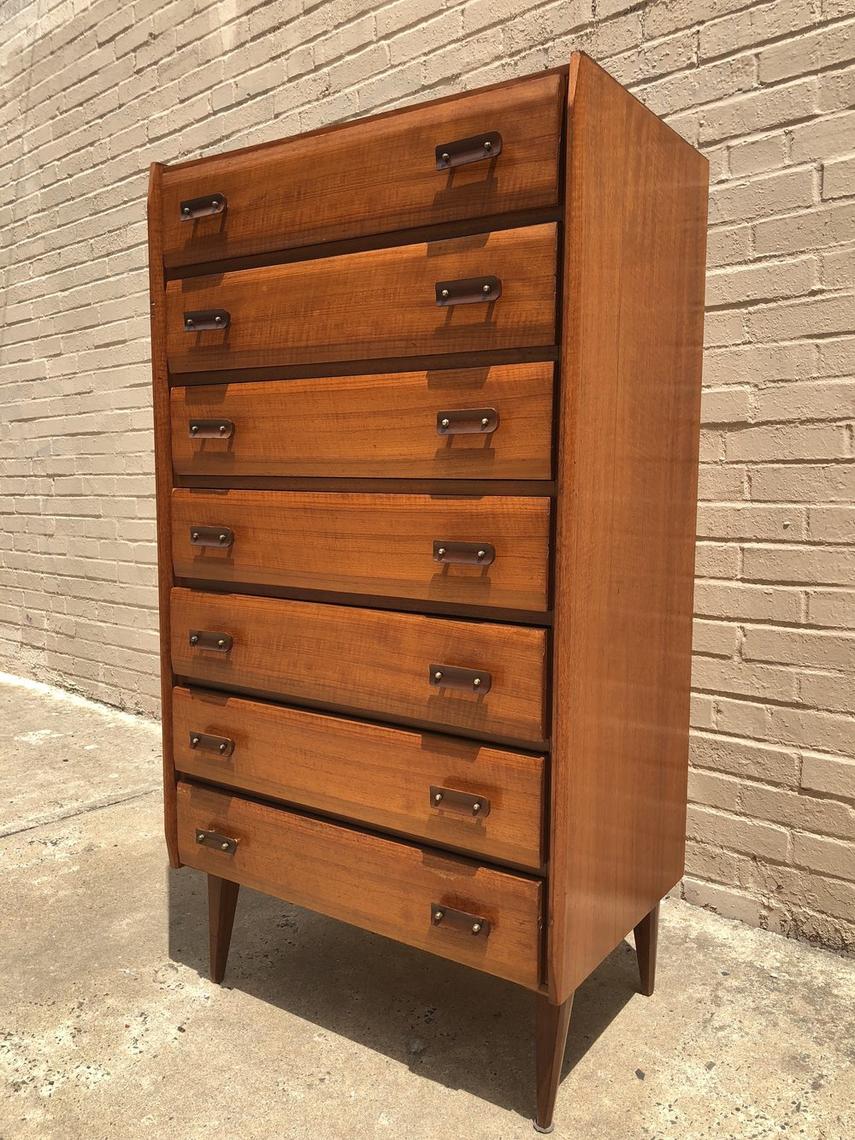 Vintage Mid Century Modern Tallboy Dresser With Dovetail Drawers For