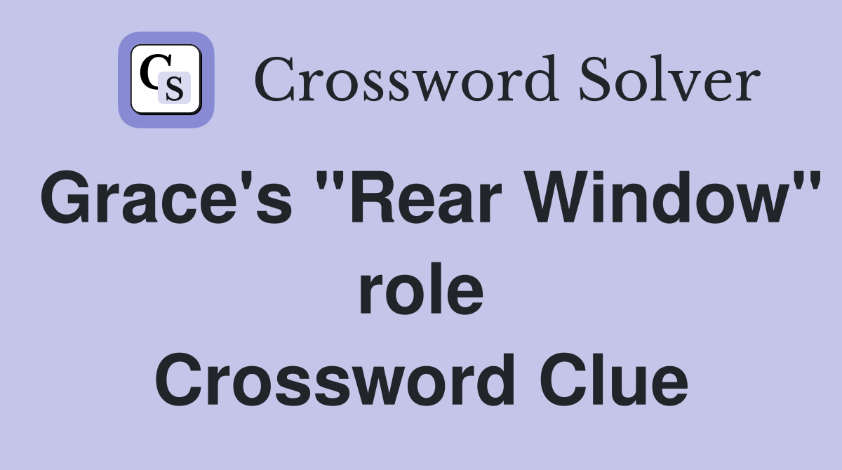 Grace #39 s quot Rear Window quot role Crossword Clue Answers Crossword Solver