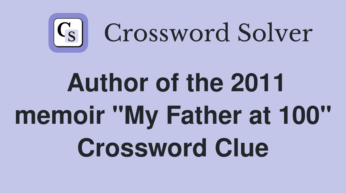 Author of the 2011 memoir quot My Father at 100 quot Crossword Clue Answers
