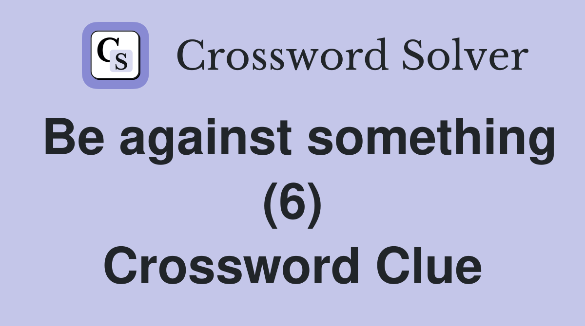Be against something (6) Crossword Clue Answers Crossword Solver