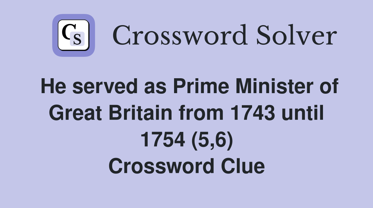 He served as Prime Minister of Great Britain from 1743 until 1754 (5 6