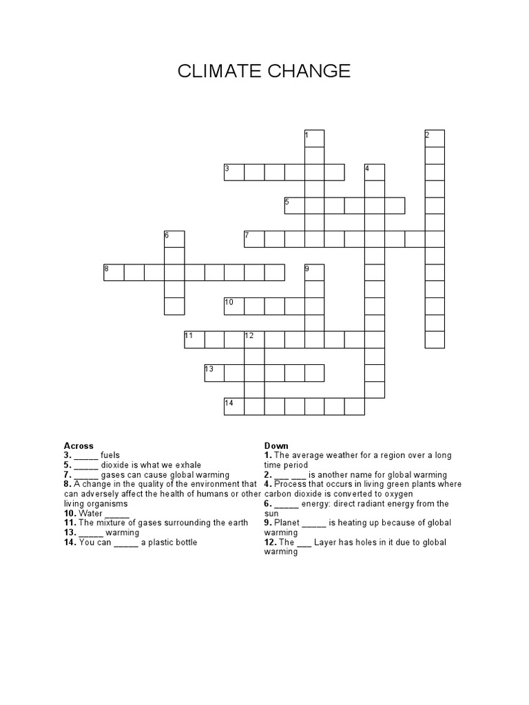 Climate Change CrossWord Puzzle Activities by Kids shelves TPT