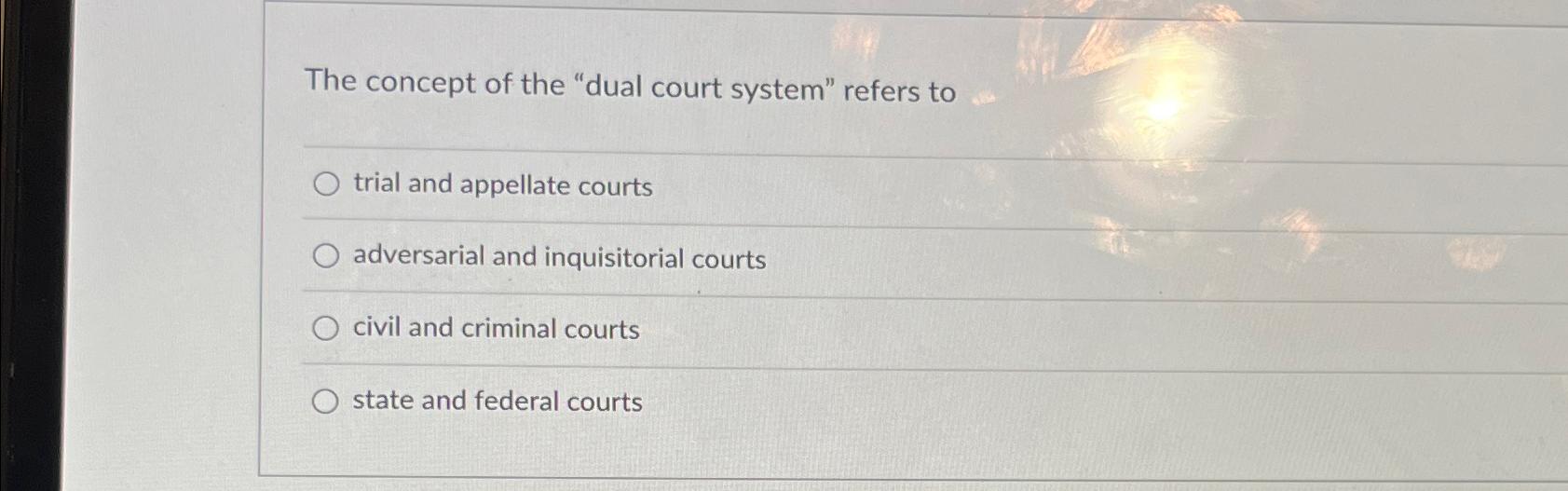 Solved The concept of the quot dual court system quot refers totrial Chegg com