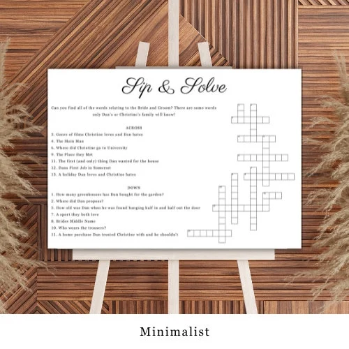 Sip Solve Personalised Wedding Crossword Puzzle Board Bespoke by