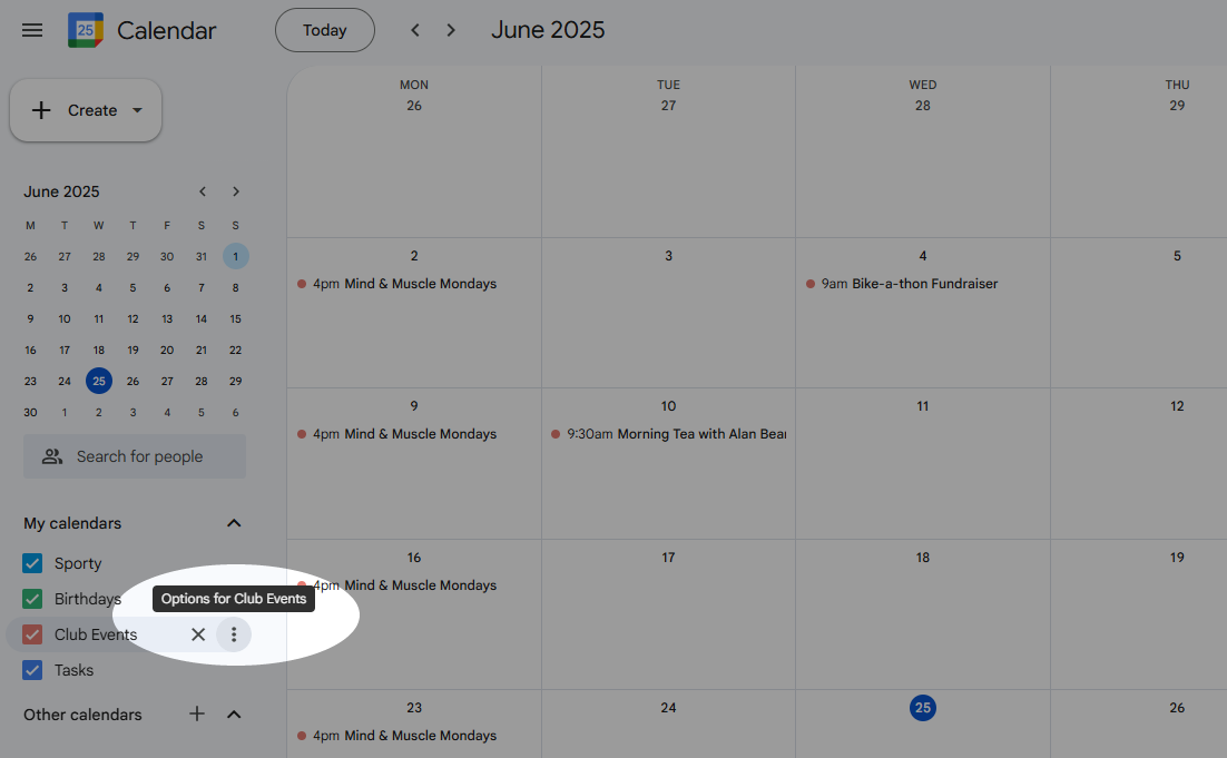 Events Calendar widget Sporty Online Support Centre