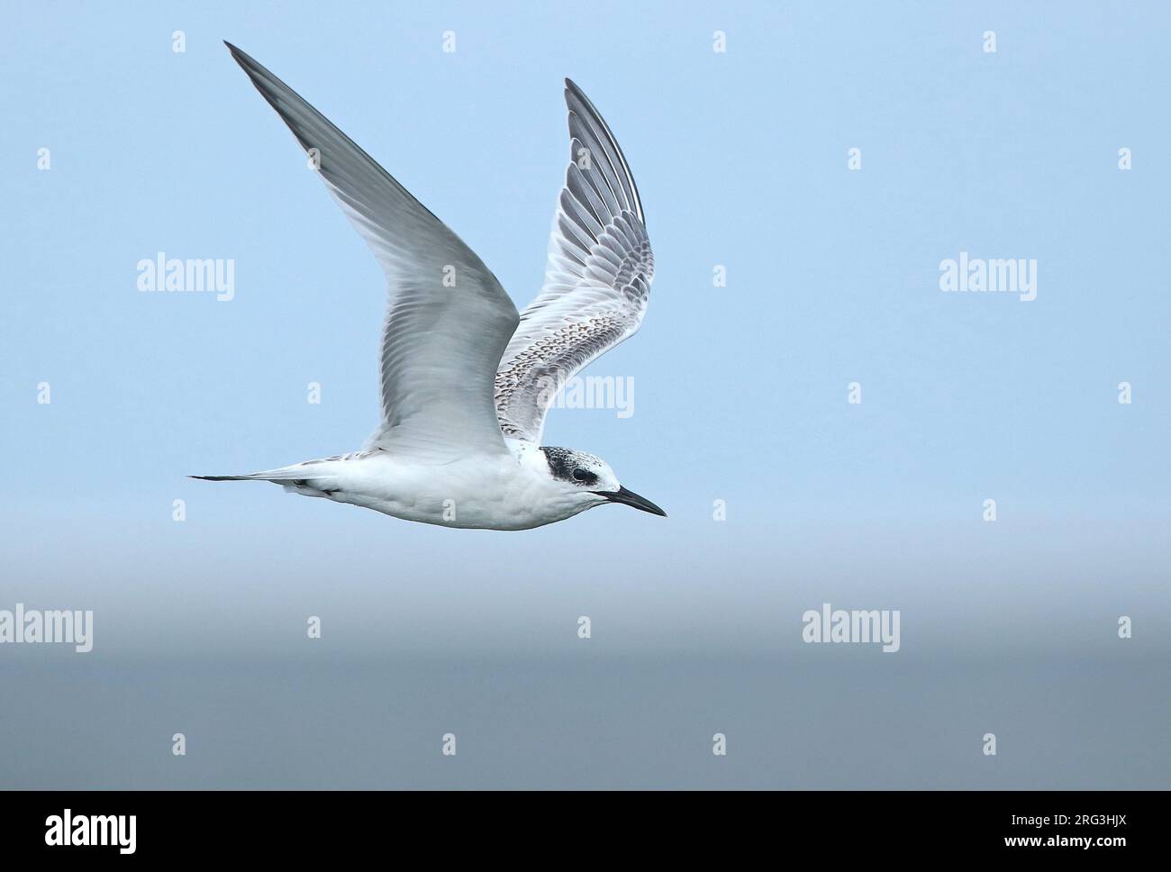 Sandwich Tern (Thalasseus sandvicensis) first calender year in flight