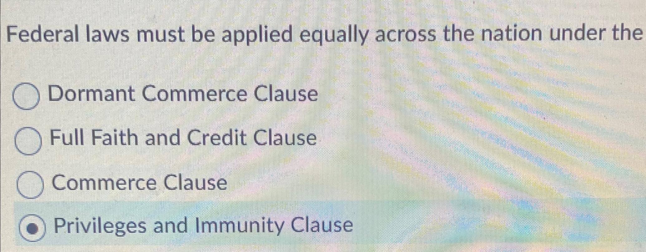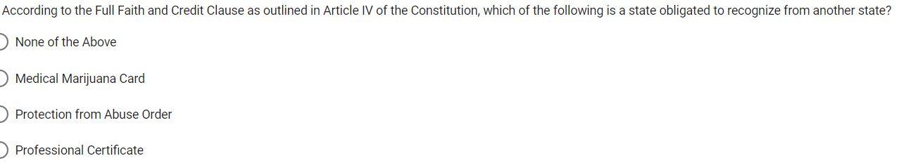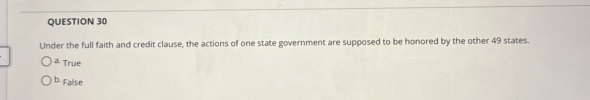 Solved QUESTION 30Under the full faith and credit clause Chegg com
