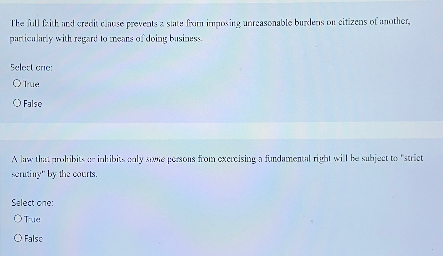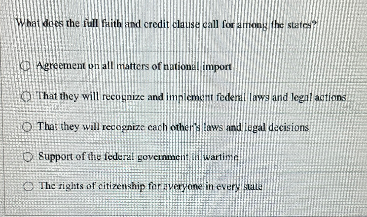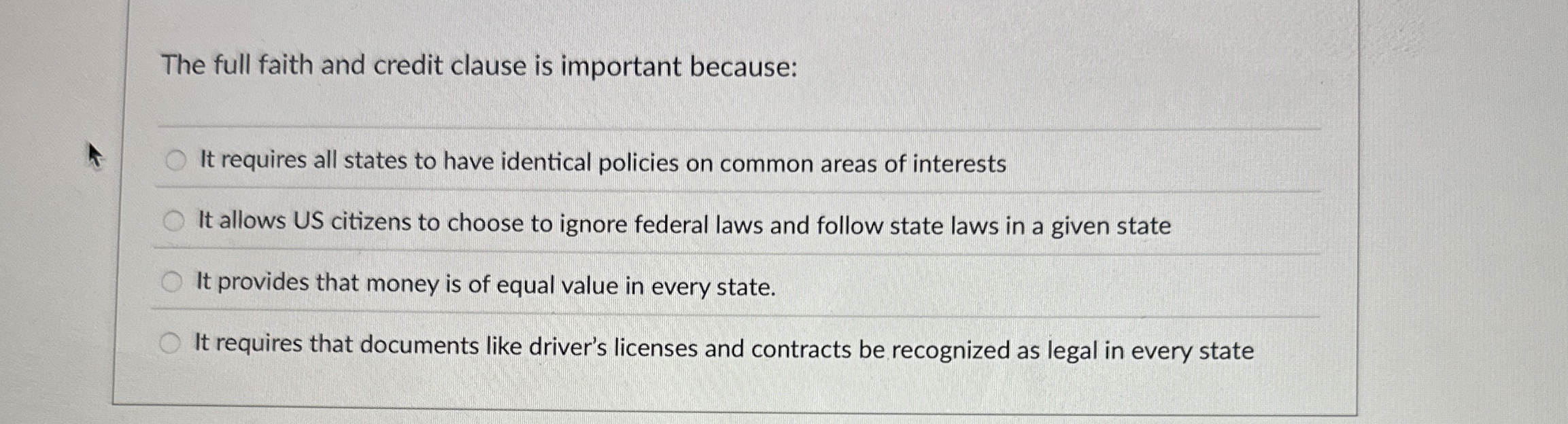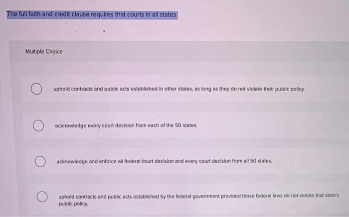 Solved Under the Full Faith and Credit Clause what does it Chegg com