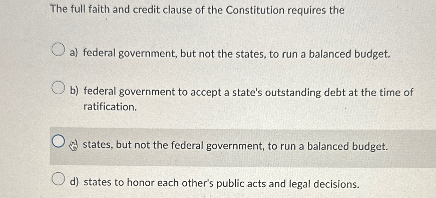 Solved The Full faith and Credit Clause of the U S Chegg com
