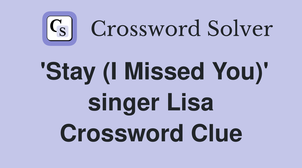 #39 Stay (I Missed You) #39 singer Lisa Crossword Clue Answers Crossword