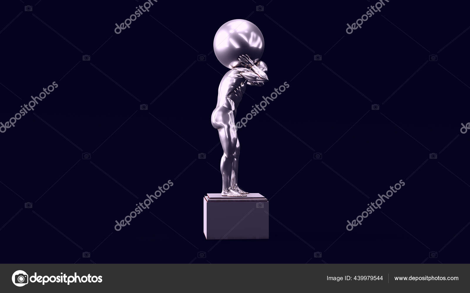 Silver Atlas Statue Holding Celestial Heavens Illustration Render Stock