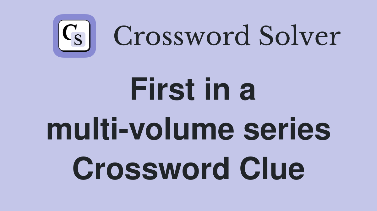 First in a multi volume series Crossword Clue Answers Crossword Solver