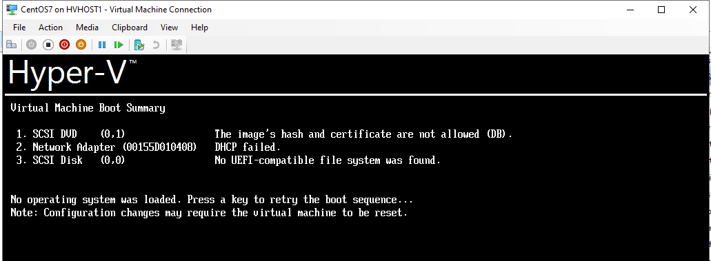 Hyper V Boot Error: The Image s Hash and Certificate Are not Allowed