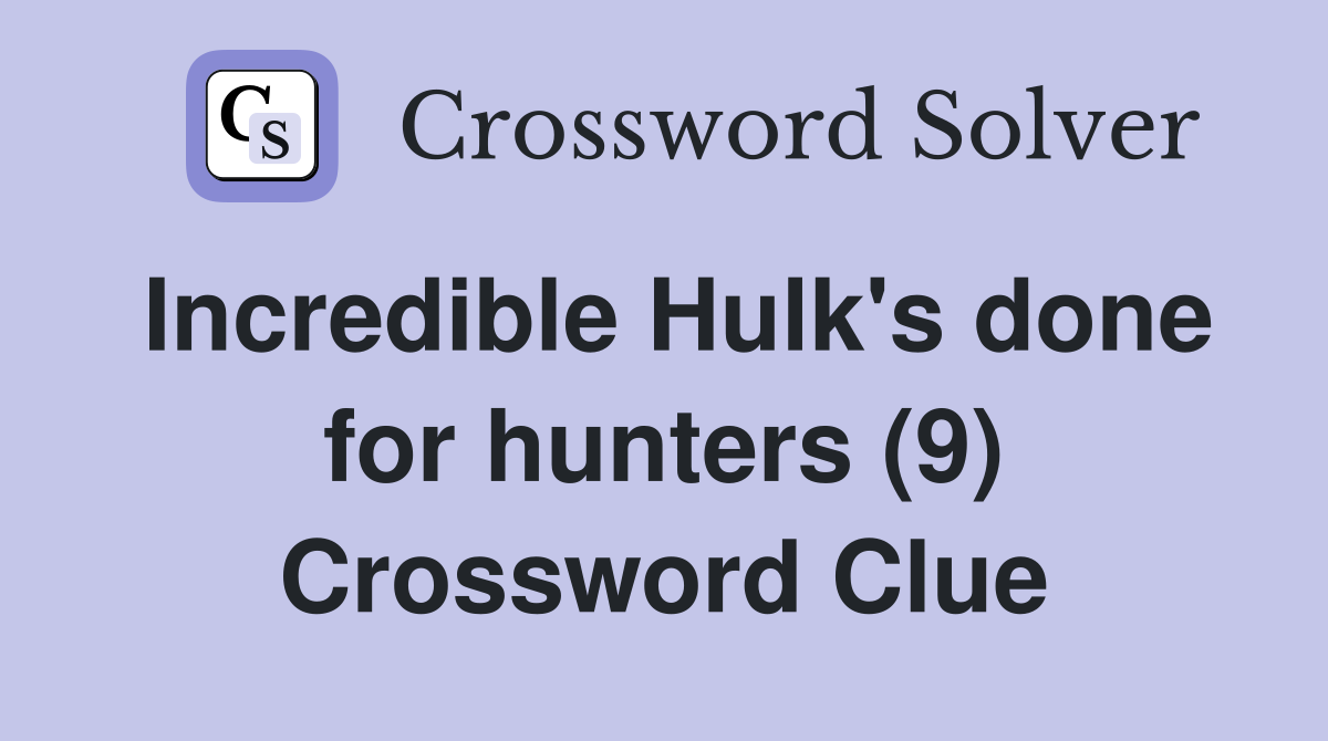 Incredible Hulk #39 s done for hunters (9) Crossword Clue Answers