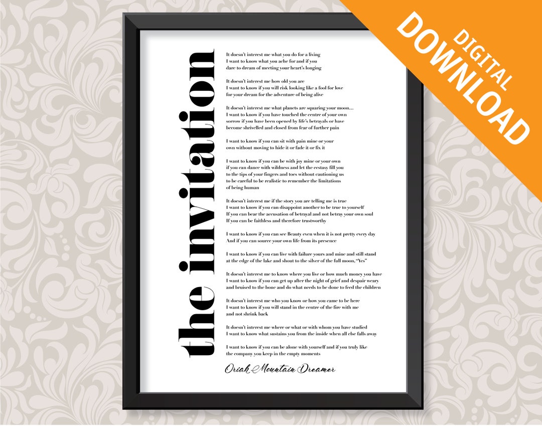 The Invitation Poem Oriah Mountain Dreamer Printable Love Print