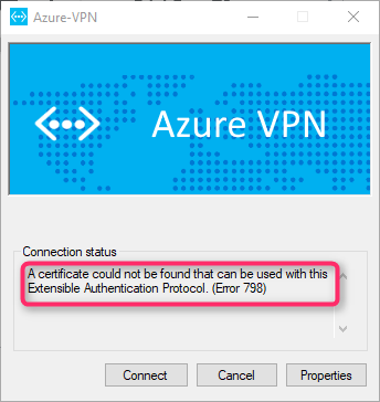 Azure vpn error A certificate could not be found that can be used with