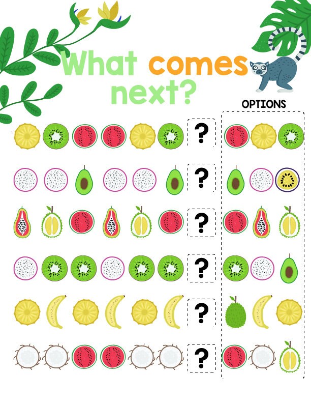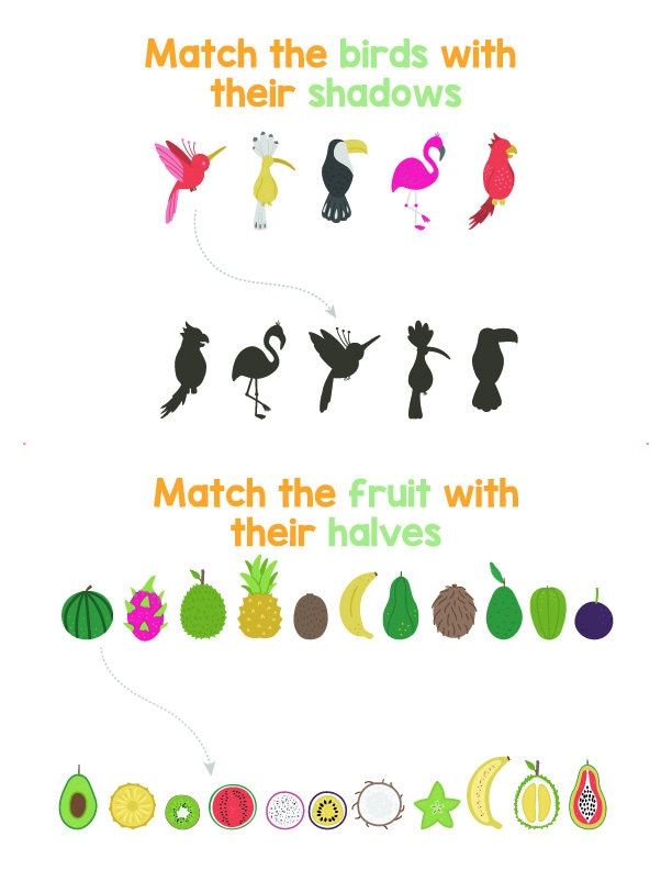 Jungle Animals Kids Activity Pack Printable Coloring Page Matching