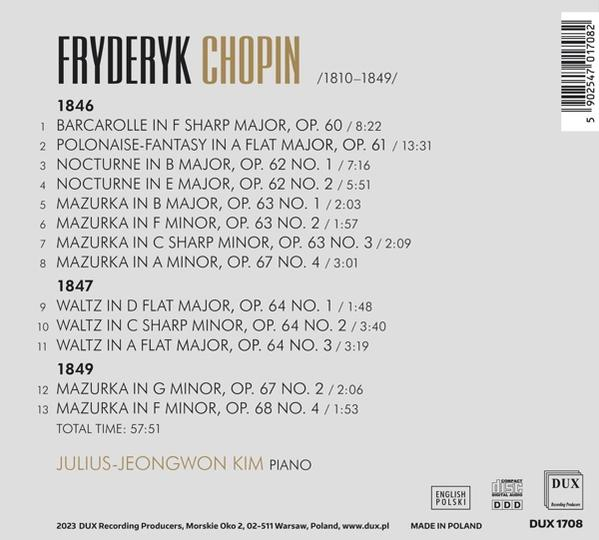 Julius jeongwon Kim Chopin #39 s Last Piano Works (CD) Julius jeongwon