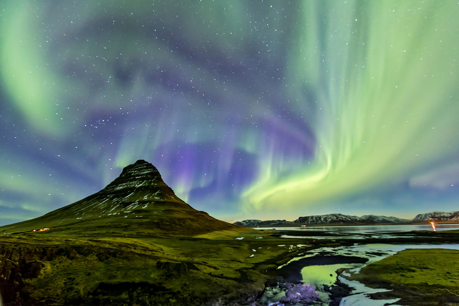 Stunning Aurora at Mount Kirkjufell in Iceland