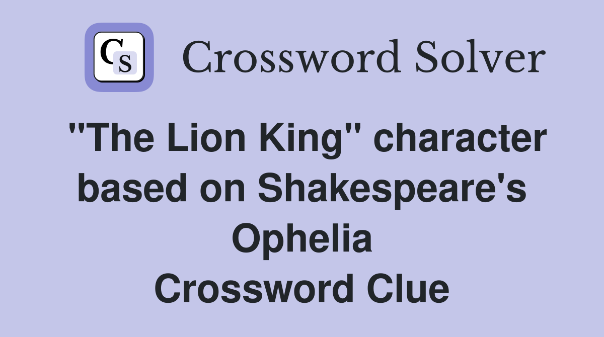 quot The Lion King quot character based on Shakespeare #39 s Ophelia Crossword