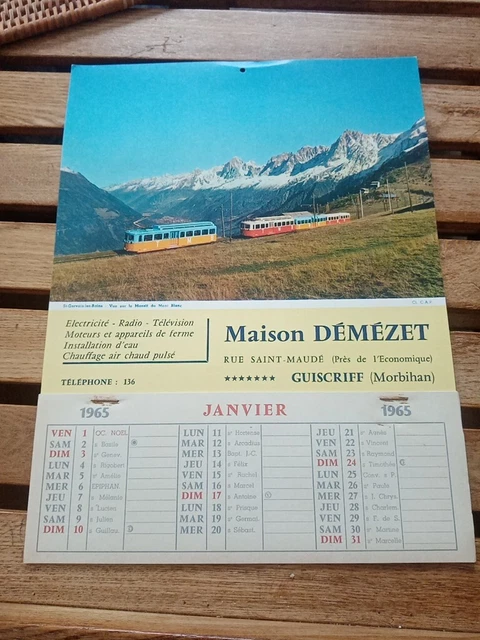 CALENDRIER VINTAGE 1965 TRAIN CHEMIN fer Railway Calendar /french Rail