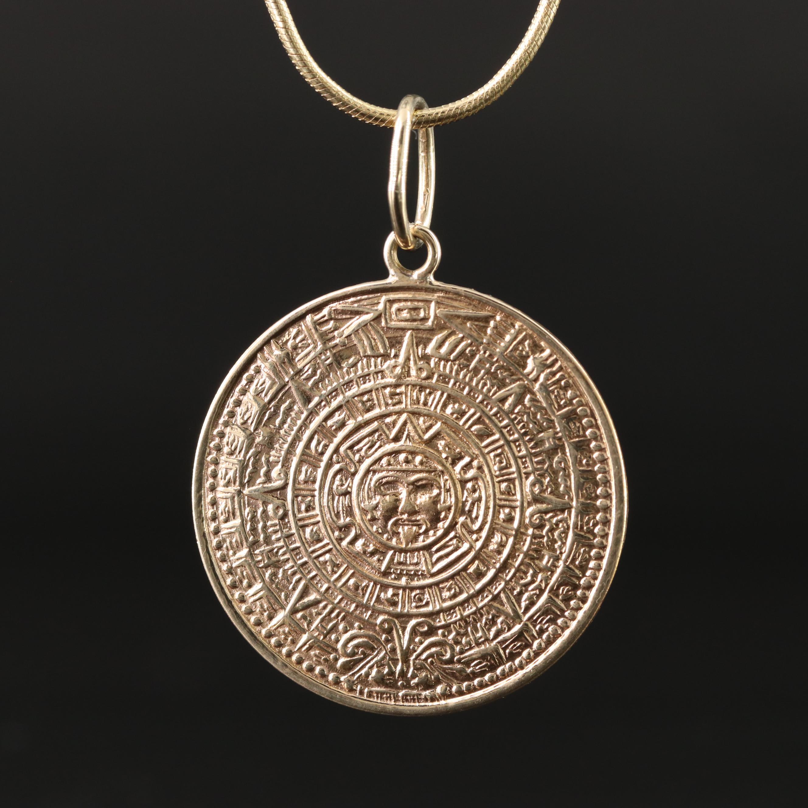 Vintage Mexican Aztec Mayan Calender Sterling Silver Gem
