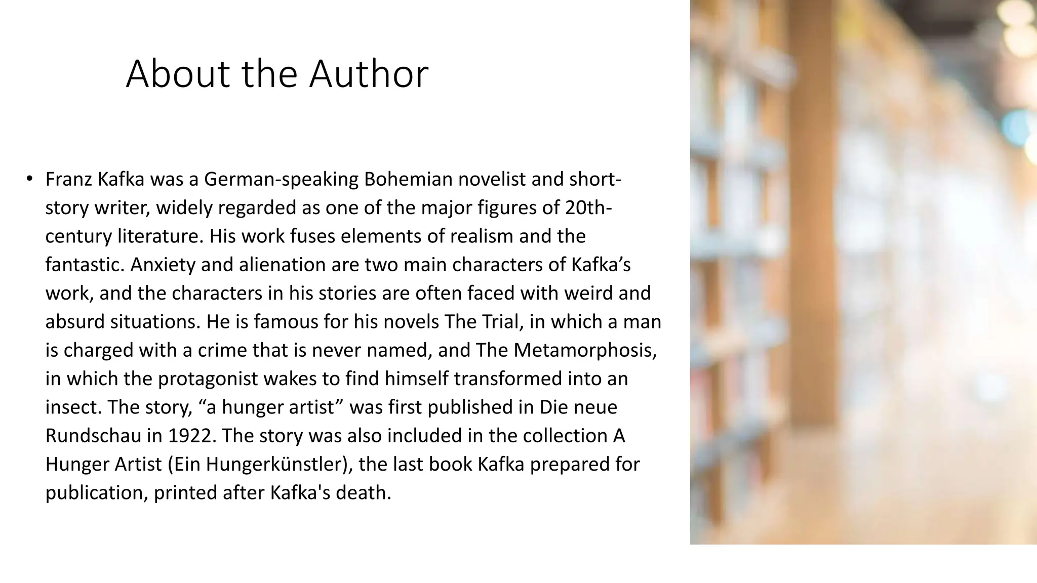 The Hunger Artist By Franz Kafka in pptx