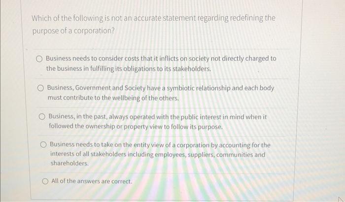 Answered: Which of the following statements regarding the corporate