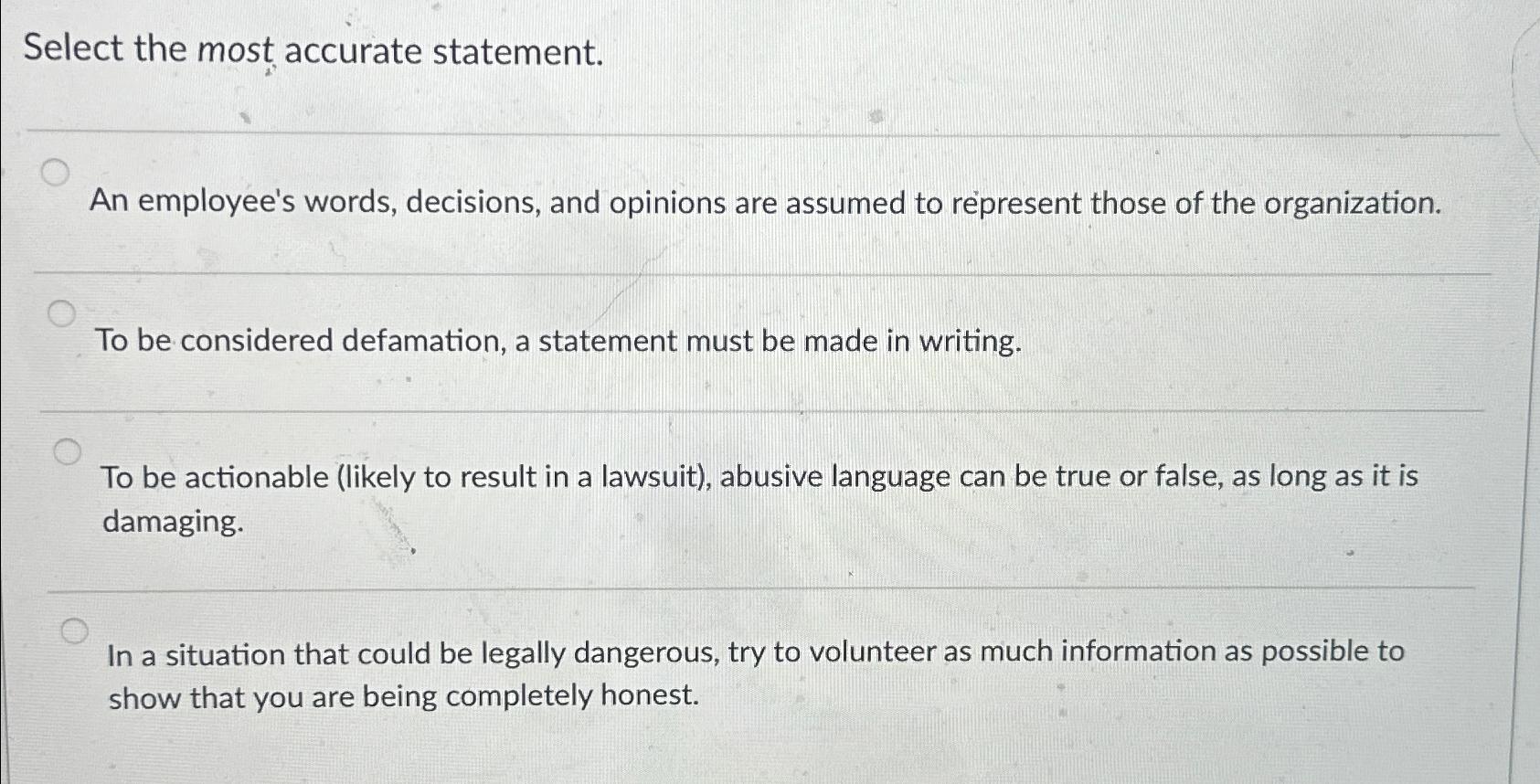 Solved Select the most accurate statement An employee #39 s Chegg com