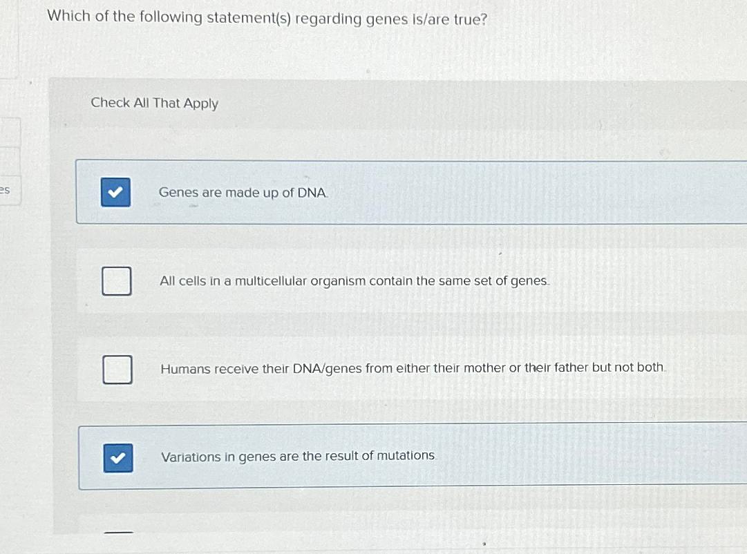 Solved Which of the following statement(s) regarding genes Chegg com