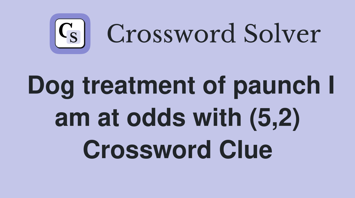 Dog treatment of paunch I am at odds with (5 2) Crossword Clue
