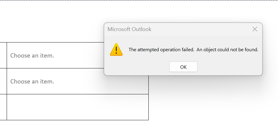 Outlook Form Error: The Attempted operation Failed An Object Could Not