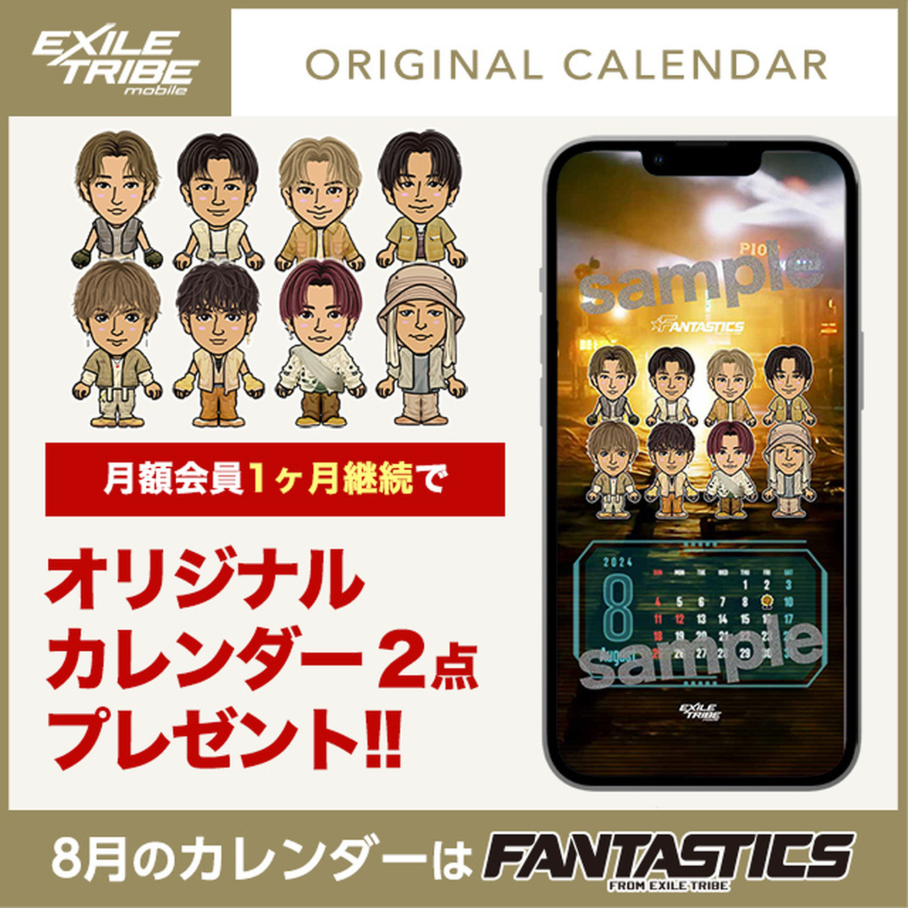 【Calendar wallpaper for August featuring FANTASTICS 】EXILE TRIBE mobile